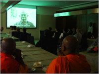 最后方丈法师代表法鼓山创办人圣严法师及僧团致赠参访团有关圣严法师的英文版著作及法鼓大学等学术单位简介光盘;而Tibbatuwawe Sri Siddhartha Sumangala Maha Nayaka Thero长老则回赠一对精美铜雕花瓶作为这次参访的纪念。
