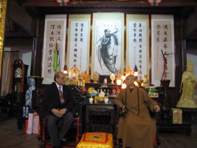 据天童禅寺报道:2007年3月26日下午五点钟,诚信法师在天童禅寺大鉴堂,接待了泰王国驻上海总领事馆差利·玛尼雅坤总领事一行十人,并与来宾亲切交谈。
