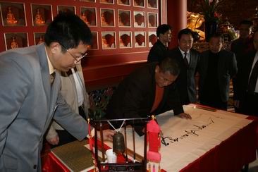 据天宁宝塔网站报道:2007年3月25日上午十时许,江苏省南京市政协副主席俞明陪同西藏自治区政协副主席、中佛协副会长、西藏自治区佛协会会长珠康·土登克珠活佛一行八人来访常州。