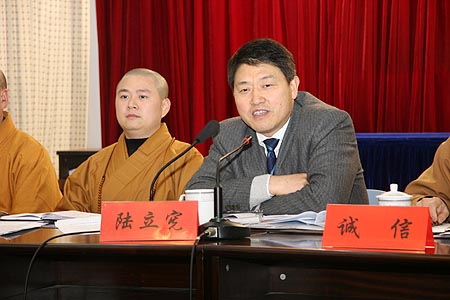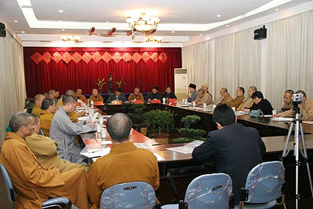 3月16日,下午二时,宁波市佛教协会八届二次理事会在七塔禅寺报恩讲堂举行, 30多名理事出席会议。宁波市民宗局陆立宪局长、徐松庆副局长、葛建国处长等到会指导。会长诚信法师主持本次会议,并汇报了宁波市佛协2007年工作计划。常务副会长兼秘书长可祥法师向大会作了2006年市佛协工作总结报告及2006度市佛协财务开支情况说明。接着与会理事,纷纷发言,大家对市佛协领导班子一年来工作,给予了充份的肯定,并提出很多建设性的意见,如在弘法布道、僧才培养、寺院管理、制止假僧尼现象等方面,应发挥市佛协组织带头作用。会议结束前,民宗局陆立宪局长作了重要讲话,并提出四点要求:一要发挥市佛协应有的作用;二要提高僧团队伍的自身素质;三要发挥全体理事的模范带着作用;四要做好各个寺院安全生产工作。最后,与会领导和全体理事合影留念。