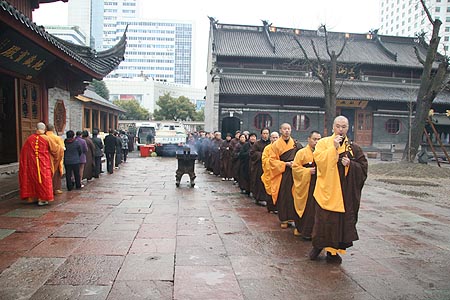 3月15日上午八时许,春雨蒙蒙,大地复苏,万物吐绿,处处洋溢著春天的气息。在这充满希望日子里,觉海莲社举行每月一次的放生法会。本次法会由七塔禅寺方丈可祥法师主持,按照佛教仪轨举行放生仪式,场面庄严肃穆,法师为放生动物说法、授三皈依。愿佛慈力,令此类众生,放生以后,获尽天年,随缘往生。前来参加放生的居士和善男信女达300多人,共放生鸽子、鲤鱼、乌龟、黄鳝、田螺等动物达5万余只。