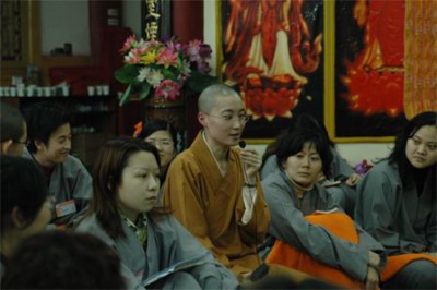道坚法师明示,此次短期出家的意义在于教授营员们一些在家修行的方法,佛法虽可顿悟,却远非一日之功。他还告诫营员们要体会出世入世之理,认真研习佛法,将佛法融入生活,从一点一滴做起。通过三天短期出家的体验生活,有20余名营员自愿选择当场皈依。道坚法师为他们主持了皈依法会,他们在佛前三跪三拜,虔诚发愿。