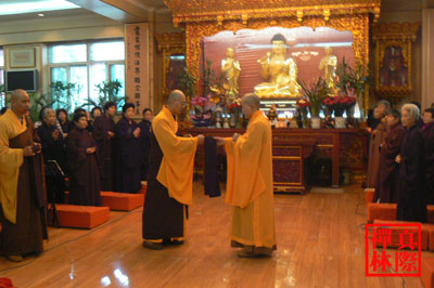 据生活禅报道:2007年2月26日上午,河北真际禅林斋天法会结束后,明海法师主持了真际禅林监院交接仪式。