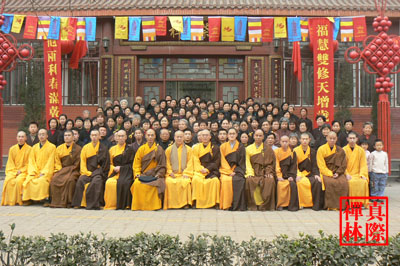 仪式结束后,明海法师、明憨法师、明勇法师以及柏林禅寺、真际禅林的诸位法师和参加法会的大众在山门前合影留念。