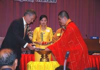 3月7日上午八时起,联合国曼谷东南亚总部,即开始举办庆祝国际佛教妇女会议各向活动,各国驻泰大使馆亦多派外交人员参加,现场显得庄严又热闹,个国人士穿梭其中,为得奖道贺,亦为现场女士们的节日道喜°
