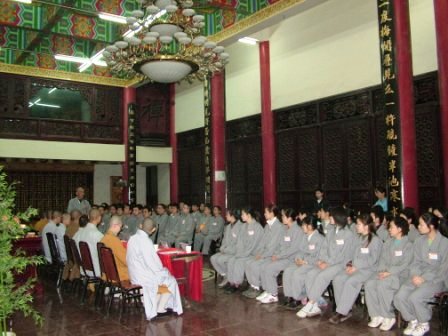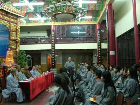 重庆华岩寺消息 2007年3月22日晚八时,重庆华岩寺第三期短期出家禅修营开营见面会在华岩寺弘法楼顺利举行。重庆佛学院副院长、重庆华岩寺监院郎光法师莅临,华岩寺常住执事也参加了本次见面会。