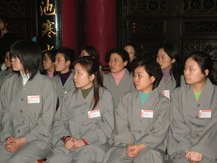 这是华岩寺举行的第三次短期出家修行活动,学员总人数八十人.此次禅修活动与以往最大的区别是法会完全按照佛门仪规举行,如受持八关斋戒,以禅修为主.