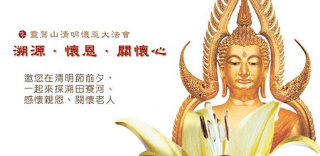 据灵鹫山佛教团网站报道:每年清明节前夕,灵鹫山基隆区护法会都会启建法会,以供乡亲们感怀祭祀祖先与亲人,克尽孝道。