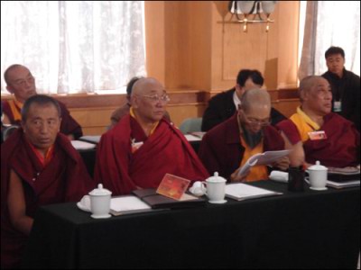 佛教界委员认真倾听其他委员的发言(图从左至右依次为:加羊加措、根通长老、戒忍法师)