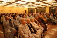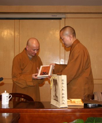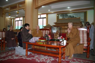 参访团信众大多为加拿大籍越南人,法脉传承于中国禅宗的临济宗。客人们首先在赵州祖师塔前礼拜、诵经并绕塔,之后依次参礼了钟鼓楼、普光明殿、观音殿、万佛楼等主要殿堂。期间,明通法师还为“奉献爱心 启航生命”慈善活动捐出了善款。下午,明海法师在指月楼客厅和大家座谈。晚上在河北省佛学院礼堂,明通法师、明海法师和大众进行了友好交流。