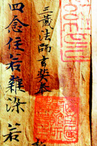 虽然已有千“岁”,但经卷正文部分保存完整,也基本没有虫蛀的痕迹。在卷尾中间,“三界寺藏经”的蓝色印章,透露着这份书写于千年前的经卷曾经安放之处。