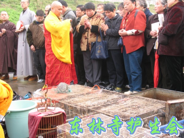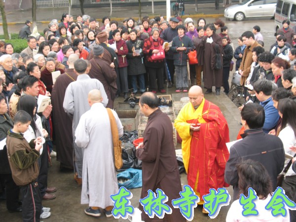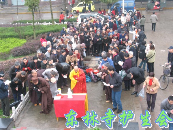 2007年3月3日星期六,农历正月十四,东林寺僧众应九江众居士的邀请在长江码头举行放生仪式,这也是九江众居士春节后在长江的第一次放生。