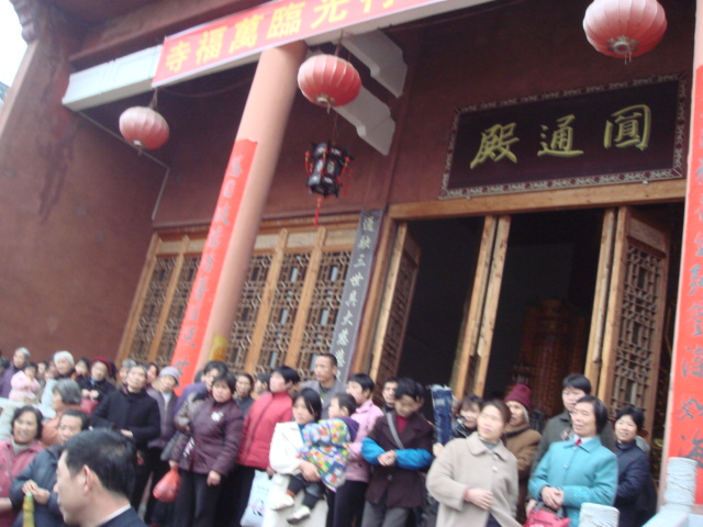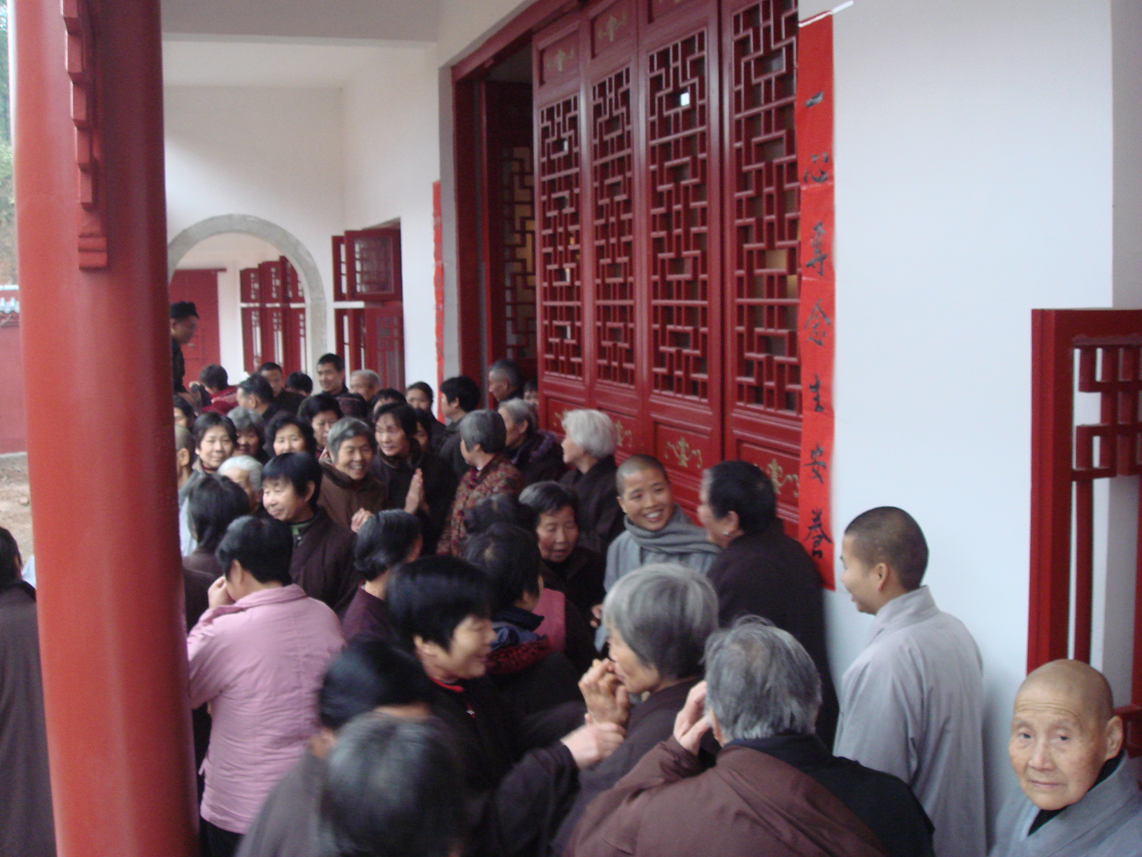 湖南祁东广大信教群众在万福寺观音殿前恭迎祖国宝岛台湾佛教界访问团