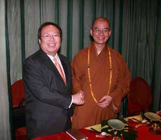 香港民政事务局局长何志平与中国佛教协会副会长兼秘书长学诚法师