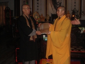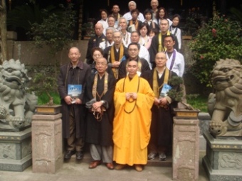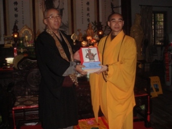 静·慈圆教授代表参访团对诚信法师的热情接待表示感谢,对寺院的将来充满了信心,并表达了良好的祝愿。随后诚信法师与静·慈圆教授互相交换了礼物以作留念。