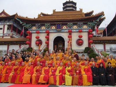 参加香港西方寺住持升座之僧信于天王殿前合影留念。