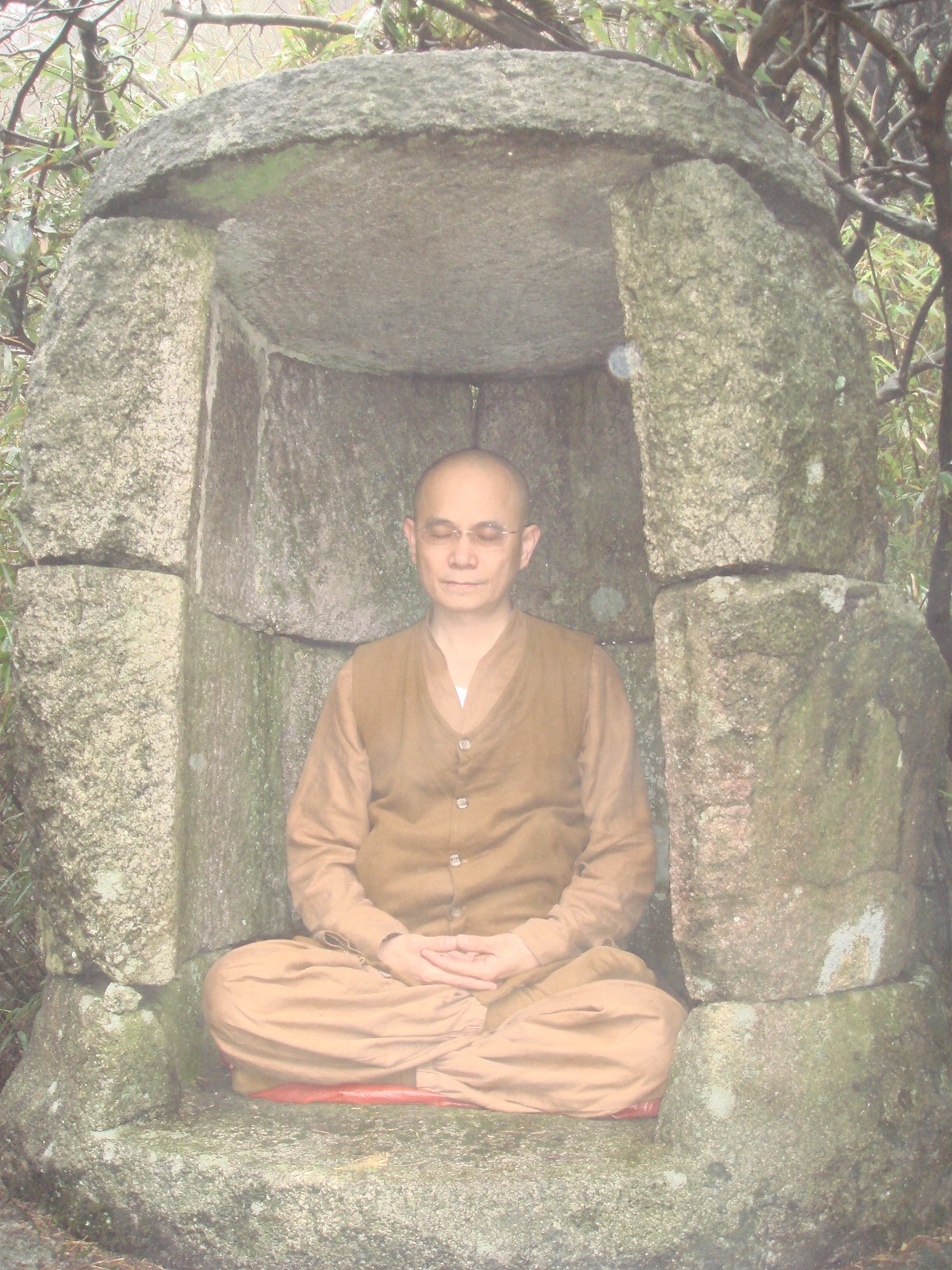 惠敏法师在南岳山龙池附近的头陀苦行处体验禅修