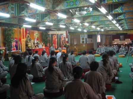 重庆佛教在线2007年3月23日讯 重庆华岩寺消息 “禅坐可以帮助我们认识自己,培养专注与智慧”,本次活动辅导法师向第三期短期出家的营员们讲授坐禅时说道。
