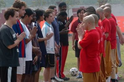 来自美国的布鲁斯是“联队”的成员。他说:“和僧人踢球是一件美好的事情,他们很有礼貌,和我所了解的佛教文化一样,崇尚和平、讲究礼让。”在比赛开始前,这些外籍老师和学生也双手合十并鞠躬,向对方表示敬意。