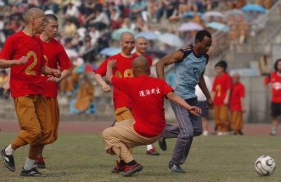 僧人踢球也疯狂 足球可帮助入世修行 宣传佛教