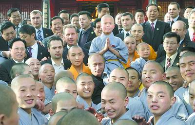 2006年3月22日,俄罗斯总统普京访华时,在少林寺看完武术表演后,兴奋地把当时8岁的小武僧释小广扛上肩头。