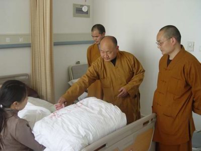 据法门寺报道:2007年3月29日,法门寺副寺贤空法师、来正法师和知客智雄法师一行三人专程前往陕西省宝鸡市中心医院住院部烧伤科看望已经住院40多天的小学生李延,李延的母亲马会宁女士接待法师一行,并介绍了李延的病情,来正法师代表法门寺捐资3500元给李延做第三次手术,李延和他的母亲深受感动。