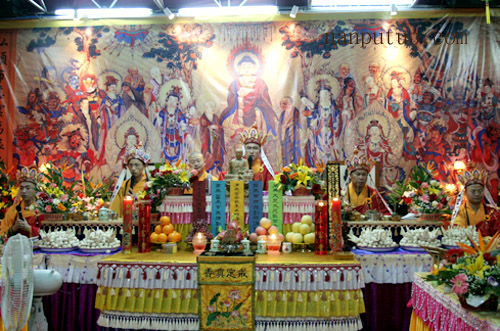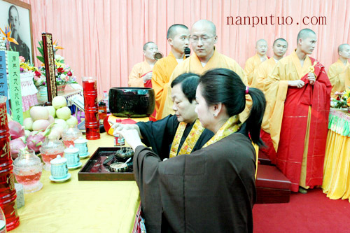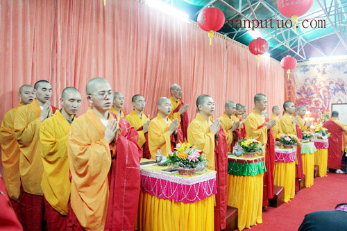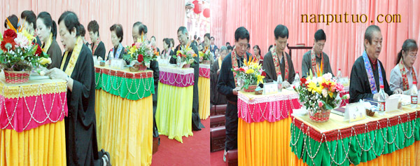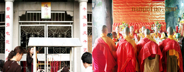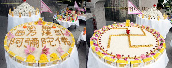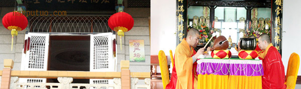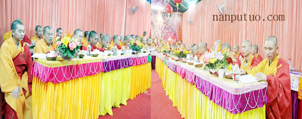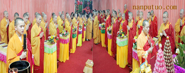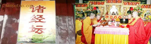傍晚5:30分,由圆满法师、振源法师、上祥法师、道平法师、常明法师等五大士携众僧于大雄宝殿施放瑜伽焰口,普利亡灵!
