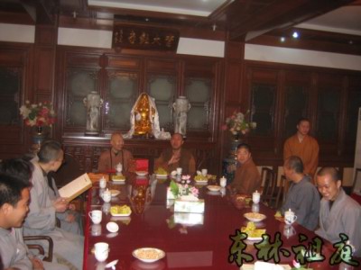 上午10点弘法团一行至阿育王寺瞻拜佛陀舍利和净土宗十一祖省庵大师灵塔,中午1点至2点大安法师应阿育王寺方丈界源大和尚邀请在阿育王寺法堂为四众弟子开示省庵大师的劝发菩提心文。