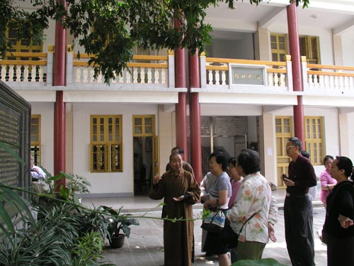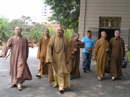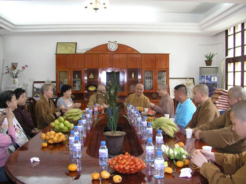 4月15日12时左右,圣辉大和尚陪同新加坡光明山普觉禅寺广声和尚及新加坡驻厦门领事馆总领事郑美乐、随员王波儿及钟陈淑琴女士等一行参访了紫竹林寺,并于紫竹林客堂品茗座谈。广声大和尚一行前来参加虎溪岩寺水陆法会期间,于今日中午来到紫竹林寺看望全体师僧的,圣辉大和尚向大家介绍了闽院女众部发展历程及现状,随后参观教学楼、图书馆。参与接待的还有界象法师、法源法师、悟源法师、超波法师。