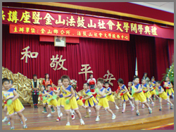 据佛光新闻网报道:为增加台北县金山乡、万里乡、三芝乡与石门乡乡民接受文化教育与提升谋生技能的机会,落实法鼓山关怀社会的大愿而开办的法鼓山社会大学,于3月31日下午一点在台湾省台北县金山乡中山堂举办九十六第一期(春季班)开学典礼。主办单位特别邀请法鼓山方丈和尚果东法师亲临现场观礼,并以‘一股安心的力量~和敬平安暨安心、安身、安家、安业’为演讲主题,主讲心灵讲座。方丈法师演说时表示,‘身心安顿,当下即是净土’,勉励在场学员在面对人生顺逆之时,要以正面认知、逆向思考去营造健康的心灵,如此就可以安于当下,离苦得乐。