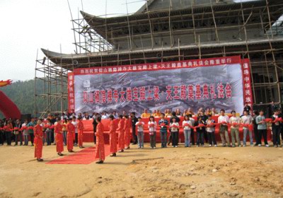 据宜春市旅游局报道:3月30日上午,江西仰山栖隐禅寺大雄宝殿上梁、天王殿奠基典礼隆重举行。