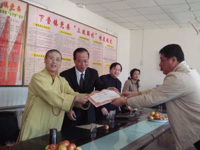 据荐福佛教网报道:2007年4月3日,天津佛教慈善功德基金会前往天津北部贫困民族地区蓟县下营镇石头营村慰问。并向石头营满族村捐赠修桥铺路款叁万元整,体现了佛教徒爱国爱教爱家乡,扶贫助困献真情的高尚情怀。