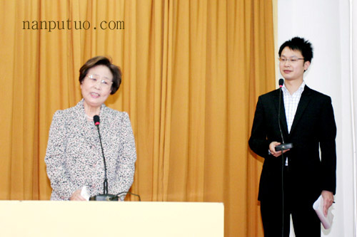 昨日晚7时,在专业主持人(翻译)的介绍下,海名老香叶子女士首先出场上台说明她的中国情结,她诚恳地说道:南普陀很温暖,来中国、来南普陀表演是她的梦想,日本相声来源于佛教,日本的佛教能有今天的成就是托中国的福。在过去的岁月里,中日两国经历了很多,能够有今天的友好往来是她所想到的,早在二十多年前就来过中国,现如今中国的发展日新月异,发展态势令人叹为观止;值此中日建交35周年纪念之际来访具有特别的意义,希望中日两国牵手并肩前进,共同走向美好的未来。之后,老香叶子女士即兴为大家演唱日本的樱花之歌。
