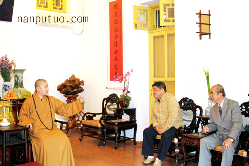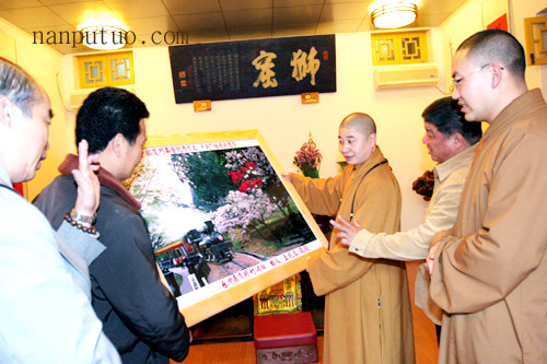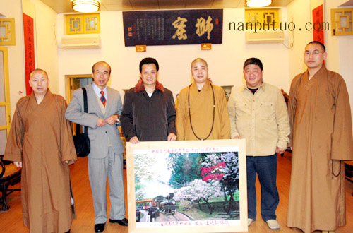 4月5日下午2时30分,台湾嘉义县竹崎乡乡长王焜弘先生等一行特地前来为我寺赠送“阿里山风景”画匾一块,以达谢意!我寺方丈则悟大和尚在丈室给以亲切接待,同时接待的人员还有知客法尊法师,僧值永缘法师等。