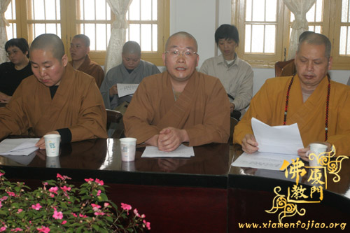 市佛协会长则悟大和尚,在会上认真细致的分析了文件,并向与会人员传达了市人大十一届会议精神。
