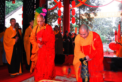 昨日早晨7时10分,随着沿途信众不断加入迎接队伍并高颂佛音,隆印法师在热烈的气氛中迈入归元寺大门。在藏经阁举行了升座仪式后,隆印法师参拜了各个大殿的菩萨。