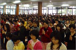 法鼓山4月15日上午于北投农禅寺举行祈福皈依典礼,法鼓山台南分院亦同步视讯联机举行。近1800名皈依民众在圣严法师亲授三皈依之后正式成为佛门弟子。圣严法师期许大众在生活中随时用智能对待事物,用慈悲对待他人。整个皈依仪式最后更在法鼓山方丈和尚法果东法师绕场关怀之后,在一片观世音菩萨圣号以及温暖祥和的法喜中圆满完成。