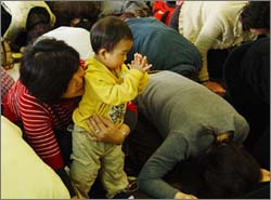 每年法鼓山举办祈福皈依的活动,总是吸引全省各地的信众参与,携家带眷同皈依,进而成为佛教的一份子。此次皈依典礼中,四代同堂的陈姓一家人,因著几次参访金山法鼓山佛教教育园区的因缘,感受佛法的好及圣严法师的悲愿,在女主人的号召下,偕同长自70岁幼至8岁的父母亲、儿女及外孙女一家九口同时报名皈依。女主人表示,这么多年来,人生历经很多的磨难,希望子孙不要再摸索,能够找到一个心灵的寄托,感恩有此殊胜的因缘了却心愿。