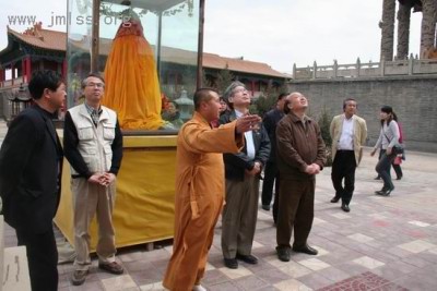 4月13日,以西川势二为团长的日本真如苑访华团一行30人,在国务院外事办张主任、甘肃省宗教局副局长卓俊才的陪同下,视察朝拜鸠摩罗什寺。受理智法师的委托,鸠摩罗什寺监院道安法师率四众弟子热情迎接。