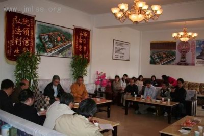 罗什寺监院道安法师陪同访华团一行参观了大雄宝殿,礼拜了鸠摩罗什祖师舌舍利塔,并向客人介绍了鸠摩罗什寺修复情况。朝拜完舌舍利塔和大雄宝殿后,道安法师邀请日本客人、省市区领导到接待室进行友好交流。道安法师在交流中说:武威鸠摩罗什寺是鸠摩罗什祖师在凉州驻锡17年学习汉语、翻译经典的道场,是全世界唯一一座以罗什祖师名字命名的寺院,为武威人民留下了宝贵的历史佛教文化资源。现在,寺院在政府的大力支持和教内外同仁的大力资助下,已具有一定的规模。目前二期工程山门、西厢房挂瓦准备动工,但由于资金缺口较大,希望国际友人大力宣传给予帮助。