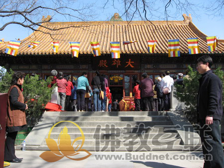 求受皈依者站满了大雄宝殿及丹墀
