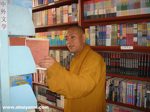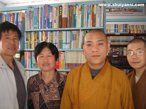 4月29日上午,水岩寺首座圆涛法师、存定法师前往西王庄走访参观了新农村图书馆,为他们送去了两箱佛教书籍,并为赵润明和张艳玲夫妇创办的新农村图书馆捐款1000元钱.