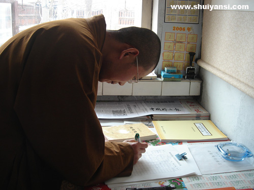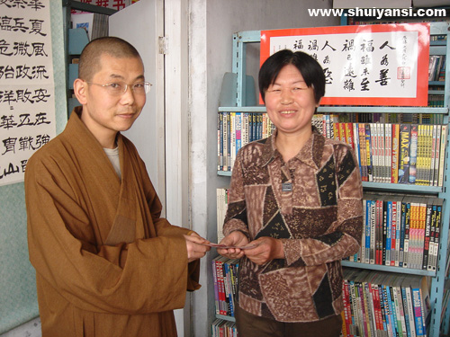 存定法师代表水岩寺常住向新农村图书馆捐款