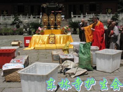 4月19日,江西九江东林寺护生会举行自观音圣诞大规模放生以来的第一次放生活动。放生仪轨在东林寺大殿前广场举行,来自浙江温州与宁波的居士们也欢喜参加。水产类被放生到长江,蛇类和野生动物被放生到庐山无人烟处。