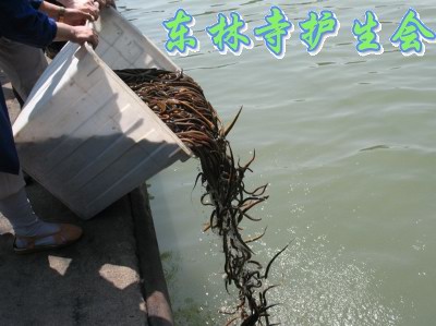 东林寺护生会九江放生:九品莲花 遍满湖江