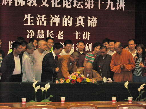随后,净慧长老和现场的听众进行了互动交流。净慧长老的开示使大家柳暗花明,茅塞顿开。讲座在热烈亲切的氛围中圆满结束。
