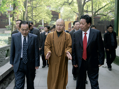 2007年4月11日,西藏自治区党政代表团一行,在西藏自治区党委书记张庆黎的带领下,来灵隐寺视察。杭州寺监院光泉法师,知客戒清法师出面接待并陪同参观。