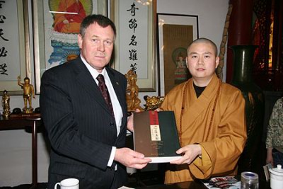 可祥法师赠送《五百罗汉画册》予立陶宛驻华大使罗卡斯·贝尔诺塔斯先生