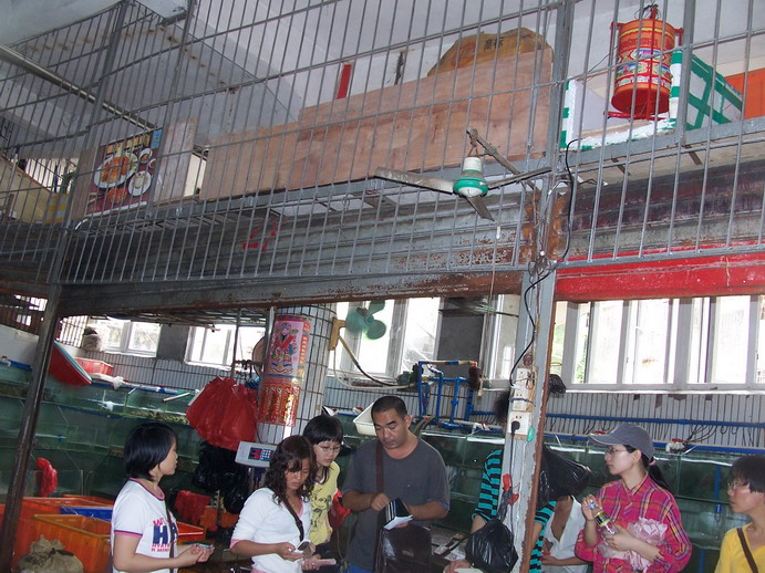 ----1000万遍的大转经轮安放在三亚第一市场里面啦。第一市场大概有200户海鲜经营者。以及150户左右的猪肉鸡鸭等经营户。