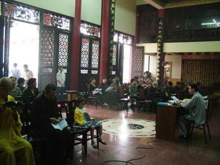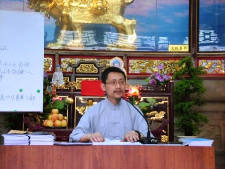 正思居士首先对《佛教三字经》作了简要介绍,随后带领大家诵读《佛教三字经》三遍。然后开始讲述四位祖师的生平、著作、思想、学习净土宗法门的因缘和成就及各自往生前的预知时日和往生时的种种瑞相等。讲解过程中,正思居士引经据典,广引譬喻,还根据自己皈依三宝十五年来所见、所闻、所感,列举了大量生动有趣、贴近生活的事例,令在场听众法喜充满,对净土法门、对念佛往生西方极乐世界生起极大信心。